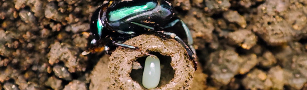 Los escarabajos peloteros construyen bolas-nido que protegen activamente, lo que aumenta significativamente la supervivencia de las larvas al asegurarles alimento y protección.