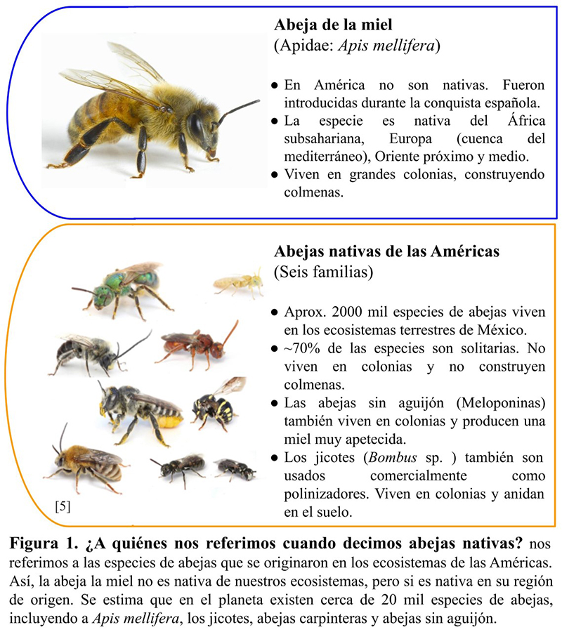 - Sí bien Apis mellifera se reconoce como un polinizador efectivo del aguacate, la participación de las abejas nativas puede garantizar que el servicio de polinización sea menos vulnerable y más efectivo al mediano y largo plazo. Esto se hace más importante si consideramos que el aguacate es nativo de México. Por lo tanto, su polinización también debe ser promovida por insectos nativos (Ej. Abejas sin aguijón y moscas) [Ej. 3,4].