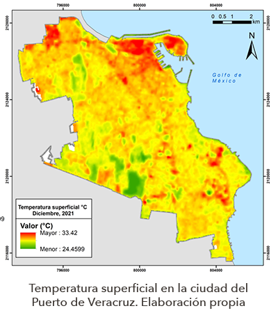 Actualmente, estamos evaluando los beneficios que obtendríamos de recuperar áreas verdes urbanas en ciudades costeras como el Puerto de Veracruz. Esta es una ciudad que, aunque es muy antigua, en la última década ha tenido una expansión urbana acelerada acompañada de un incremento poblacional de más del 10 % en ese mismo periodo. Este crecimiento ha estado acompañado de la desaparición de áreas verdes y del incremento de temperatura, pero para saber si están relacionados debemos mirar más de cerca.