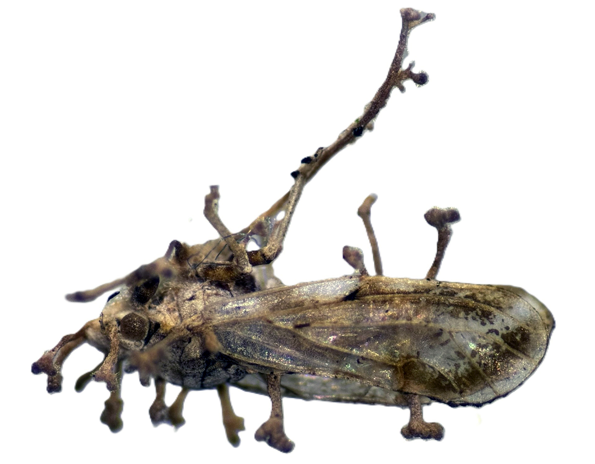 Figura 1. Diaphorina citri infectada por un hongo entomopatógeno