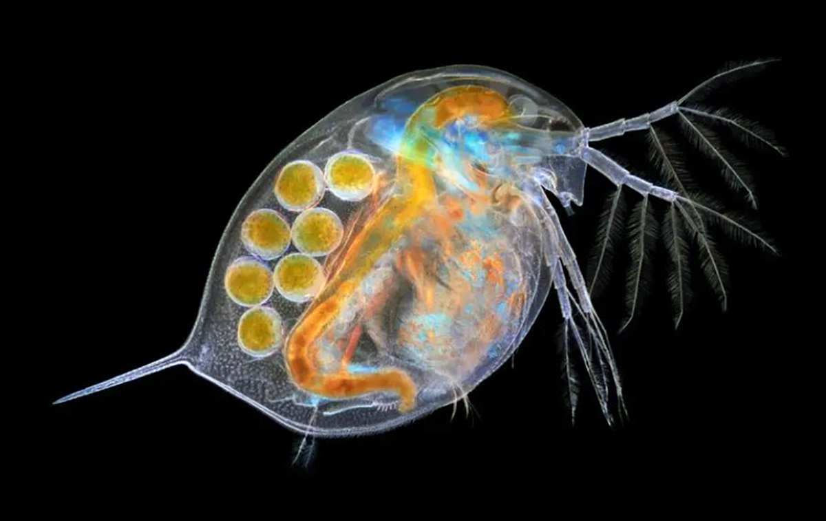 - Daphnia magna: Una de las especies más grandes, alcanzando hasta 5 mm. Es ampliamente utilizada en estudios eco-toxicológicos y como alimento en acuicultura.