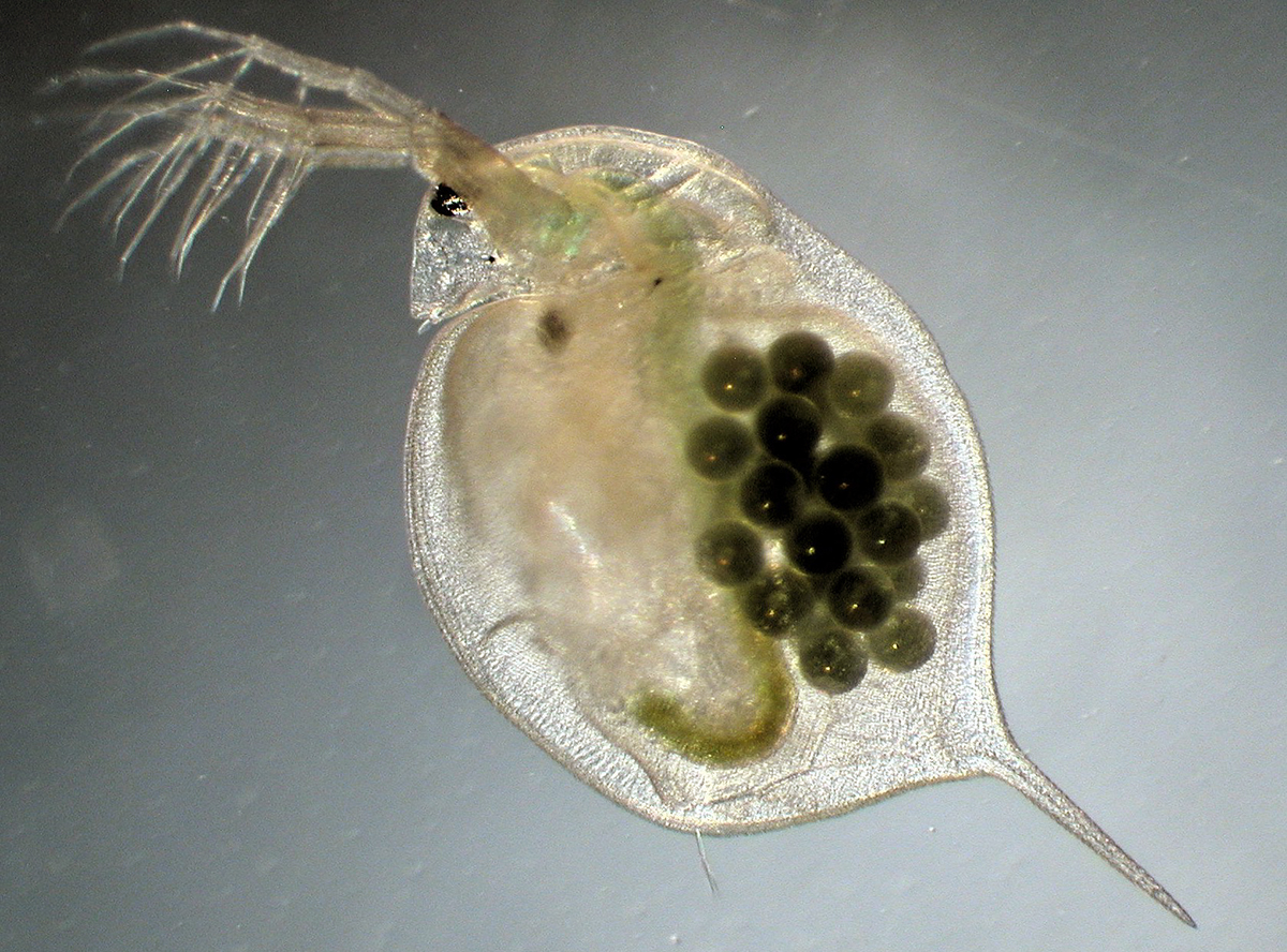- Daphnia pulex: Más pequeña, común en aguas dulces de América del Norte. Es frecuentemente utilizada en investigaciones genéticas y ecológicas.