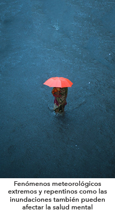 3.- Impactos indirectos en la salud mental, al sentir una profunda tristeza, desolación, preocupación y temor por el futuro, que pueden presentarse no únicamente en quienes han vivido una experiencia personal o familiar cercana de catástrofe climática, sino en cualquier persona que se informe sobre la situación actual de crisis ambiental global. Ver, escuchar y leer noticias devastadoras derivadas de la crisis ambiental global, puede producir un profundo sentimiento de vulnerabilidad e impotencia y generar estados emocionales como la eco ansiedad, laeco ira y la solastalgia (término creado por el filósofo australiano Glenn Albrecht que se refiere a “la melancolía o la nostalgia por la pérdida de un hogar, estando en el propio hogar”).