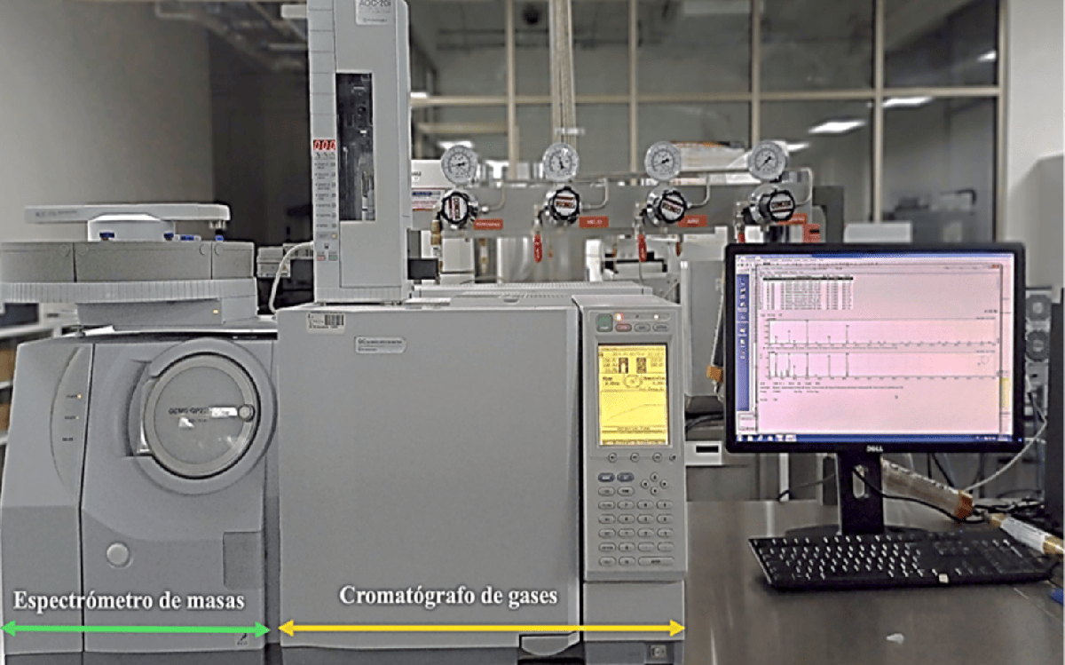 Cromatógrafo de gases acoplado a un espectrómetro de masas, utilizado en la identificación de compuestos volátiles en el Laboratorio de Ecología Química del INECOL.