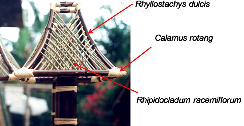 En la localidad de Monte Blanco, perteneciente al municipio de Teocelo, Ver., los artesanos utilizan este bambú para tejer los respaldos de las sillas y sillones, como adorno de las alacenas y artesanías, obteniendo diseños con figuras muy originales. También se elaboran pantallas de lámparas (Figura 4), o cortinas con diferentes diseños artísticos. Otro uso de esta planta es para decorar interiores y exteriores de casas (Figura 5).