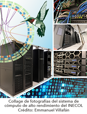 La realización de dichos proyectos no sería factible sin el uso de un HPC de características muy particulares en cuanto a su configuración, mismo que por su gran velocidad, fue en su momento nombrado Huitzilin (en náhuatl quiere decir colibrí). Desde su puesta en marcha (hace aproximadamente 10 años), Huitzilin ha sido un sistema que opera en óptimas condiciones gracias a proyectos propios de los investigadores financiados en su mayoría por el CONACyT. Cuenta actualmente con 10 nodos de cálculo (560 núcleos de procesamiento en total), cada uno con una memoria RAM que va de 750 Gb a 1 Tb. Además, tiene un sistema de almacenamiento de 140 Tb y cientos de aplicaciones especializadas que han sido instaladas para el análisis de datos biológicos. Gracias a esta infraestructura, se ha brindado servicio a más de 80 usuarios del INECOL y a muchos otros adscritos tanto a centros públicos de investigación del CONACyT, como adscritos a otras facultades, institutos, centros de investigación y algunas universidades que cuentan con programas afines de educación superior. A través de la impartición de cursos se ha capacitado a cientos de estudiantes en el uso de herramientas computacionales especializadas, se han formado decenas de profesionistas y especialistas en temas de ecología y biodiversidad, y se han generado resultados que han derivado en la publicación de múltiples artículos científicos y de divulgación.