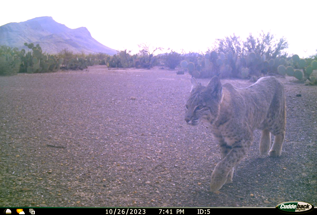 Foto captura del gato montés en la Reserva de la Biosfera de Mapimí, Durango. Crédito: Eva López Tello Mera