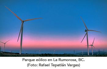 Parque eólico generando energía eléctrica en el altiplano mexicano (Foto: Rafael Tepatlán Vargas).