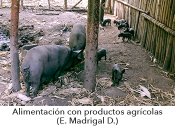 familiares cerca de las viviendas. Los animales normalmente se encuentran confinados en instalaciones rústicas, elaboradas con materiales locales (madera y lámina de cartón), y en algunos casos de origen industrial.
