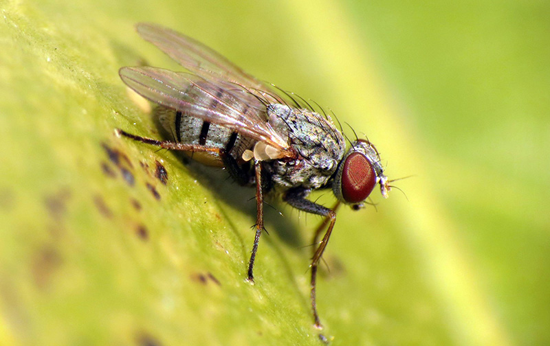 Slider: Adulto de Coenosia attenuata depredando un drosofílido (crédito: Katja Sabine Schulz).