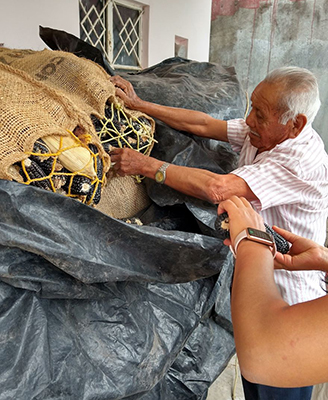 Mazorcas de maíz blanco colgadas para su secado. Foto Carlos Flores