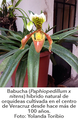 Este grupo de plantas son ampliamente valoradas y cultivadas en Veracruz. Por ejemplo, la orquídea babucha (Paphiopedillum x nitens; Fig. 2) es una planta híbrida natural que se sabe ha sido cultivada en traspatios y fincas de café en el centro de Veracruz desde hace más de 120 años, aunque la llegada de este híbrido natural al centro de Veracruz no está documentada. Otras orquídeas notables cultivadas en esta región desde hace más de 100 años son los híbridos de diferentes especies de Cymbidium, Dendrobium nobile y Cattleya. Las orquídeas del género Cymbidium fueron las primeras que se utilizaron con fines hortícolas. A la fecha son uno de los géneros más populares de orquídeas en cultivo, debido a sus coloridas inflorescencias que decoran los interiores de los hogares. De igual