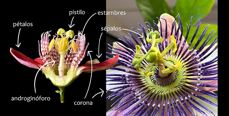 Estructura de las flores de las pasionarias. Crédito: María Teresa Jimenez Segura