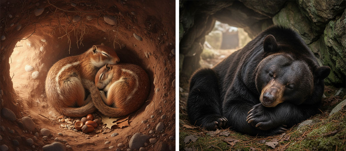 Antes de dormir un buen rato, estos mamíferos siguen un proceso instintivo y asombroso. Comen más de lo habitual para generar reservas de grasa, luego se refugian en madrigueras o cuevas, que ellos mismos construyen o eligen para mantenerse seguro y donde nadie pueda molestarlos para conseguir protegerse del frío y dormir placenteramente.