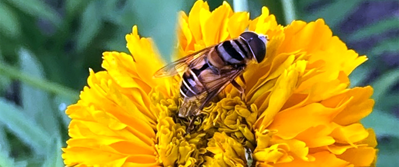Palpada vinetorum en flor de cempasúchil (Foto: Vicente Hernández)