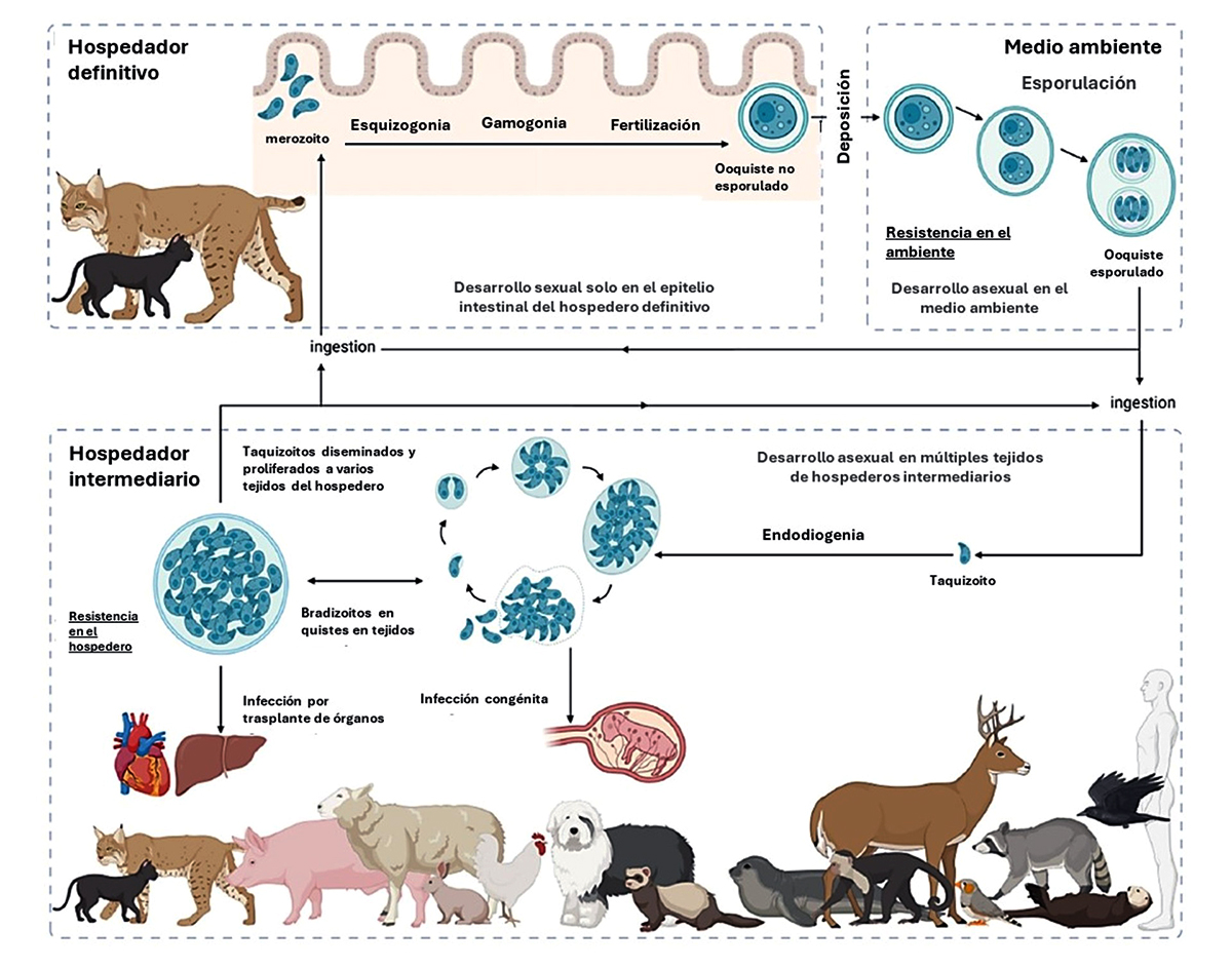 Figura 1: Ciclo de vida de Toxoplasma gondii (modificado de Delgado et al. 2022)