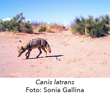 El tamaño promedio del ámbito hogareño para todos los coyotes (Canis latrans) que se siguieron en el bosque templado de la Sierra Madre de Oaxaca fue de 3.45 km2, siendo mayor en el periodo de dispersión (4.74 km2), seguido de la gestación (4.58 km2), reproducción (2.44 km2) y crianza (2.04 km2). La estimación promedio del ámbito hogareño para la temporada estudiada fue de 6.52 km2, siendo mayor para la época seca que fue de 6.69 km2 (Marín-Sánchez et al. 2015)