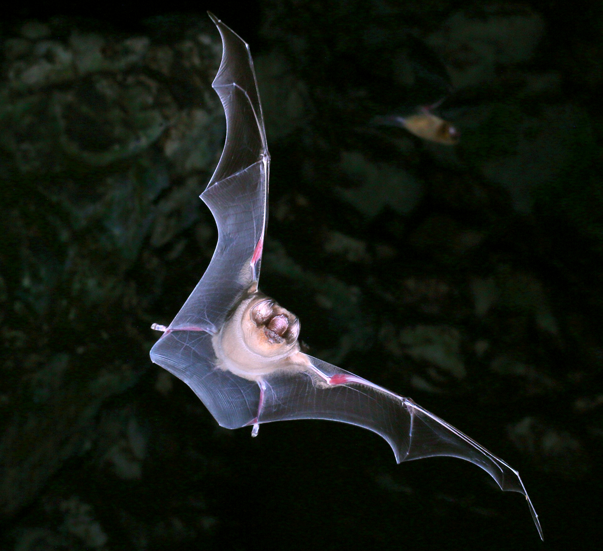 Fig 2. Los murciélagos insectívoros detectan a sus presas mediante el sistema de biosonar, para el cual emiten pulsos ultrasónicos por la nariz o la boca, tal como hace este murciélago de cara de fantasma (Fotografía: Jens Rydell y Antonio Guillén).
