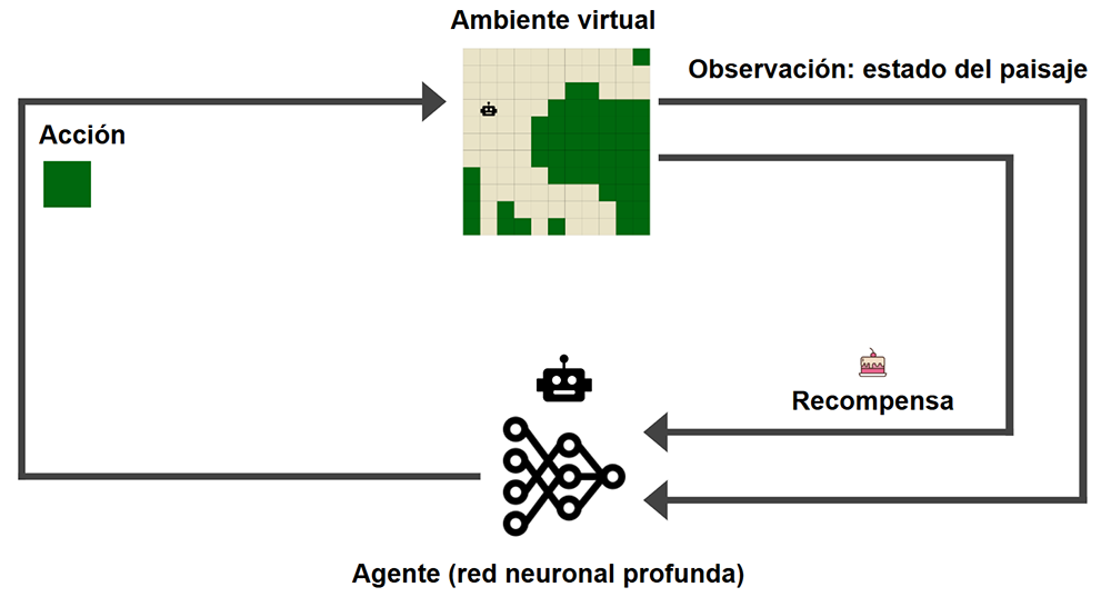 En un mundo donde los paisajes están cada vez más fragmentados y las especies tienen dificultades para moverse entre hábitats aislados, este trabajo se pregunta: ¿y si dejamos que la inteligencia artificial diseñe mejores planes de conservación? En el artículo mostramos cómo el aprendizaje por refuerzo profundo —la misma familia de algoritmos detrás de sistemas que juegan videojuegos o que forman parte del entrenamiento de ChatGPT— puede aprender a “jugar” el problema de la planificación de la conectividad como si fuera un reto estratégico. Entrenamos agentes que restauran parches de hábitat sobre paisajes reales y logramos optimizar métricas complejas de conectividad, como el Integral Index of Connectivity y el Probability of Connectivity, que son especialmente difíciles de abordar con métodos tradicionales de optimización matemática. En paisajes pequeños, la IA redescubre soluciones óptimas conocidas; en un caso real en México, consigue aumentar la conectividad forestal en un 66% restaurando solo una fracción mínima del territorio. En resumen, convertimos la conservación en un problema de aprendizaje… y mostramos que la IA puede ayudarnos a reconectar la naturaleza a escalas donde los métodos tradicionales empiezan a mostrar dificultades.