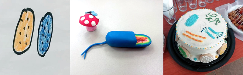 Visibilizando los microorganismos con dibujos (Kevin D. Méndez), plastilina (Mariel García) o pasteles (Aranza Rodríguez)