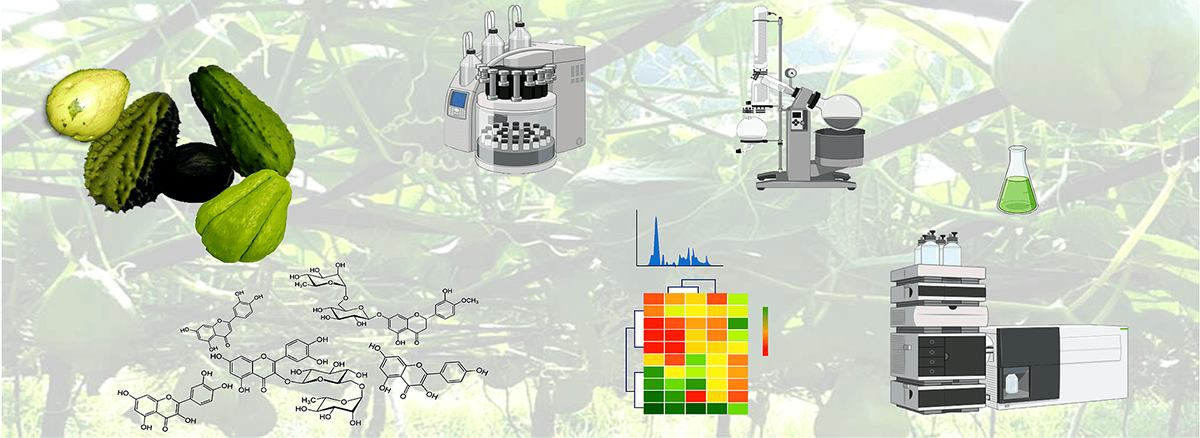 Slider: Representación gráfica de Sechium spp. y algunos de los compuestos fenólicos identificados. Erika Valencia