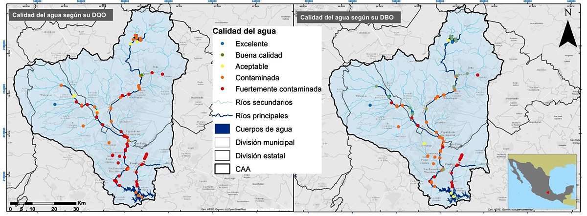 Por ejemplo, de acuerdo con los datos de la Comisión Nacional del Agua (CONAGUA) de 2019, la calidad del agua en los 80 puntos de muestreo de la región de la CAA refleja una alarmante degradación. Con base en los indicadores de Demanda Química de Oxígeno (DQO) y Demanda Bioquímica de Oxígeno (DBO), que evalúan la presencia de materia orgánica biodegradable y no biodegradable en el agua, se identificó que 89% de los puntos de muestreo presentaron agua contaminada o fuertemente contaminada en cuanto a DQO, mientras que, en la medición de DBO, 65% de los puntos reflejaron niveles de contaminación o fuerte contaminación. Esto indica una alta carga de materia orgánica y contaminantes en el agua, lo que provoca un mayor consumo de oxígeno durante su descomposición, afectando la vida acuática y reduciendo la capacidad natural de autodepuración de los cuerpos de agua en la región.