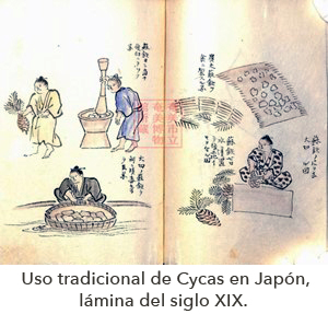 También, existe evidencia enrestos arqueológicos presencia de restos de semillas de Dioon en cuevas de Tamaulipas y en Tehuacán-Cuicatlán, lo cual indica el uso de esta planta como alimento. Análisis moleculares de mi grupo de investigación, usando enzimas y DNA, muestran patrones genético-espaciales locales que sugieren que en esta zona algunas plantas fueron plantadas por los grupos precolombinos que habitaban este territorio, lo cual se sustenta enevidencia etnográfica del uso milenario entre las comunidades indígenas de México, Centroamérica y el Caribe. Esta es una nueva área del conocimiento que apenas está surgiendo, destaca el libro sobre la etnoecología de las cícadas de Mesoamérica y el Caribe, editado en 2022 por Michael D. Carrasco y colaboradores (Figura 4).