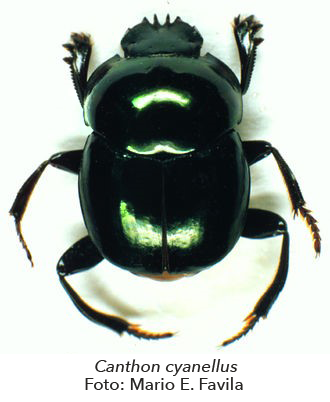 Yo estudio a otro grupo de escarabajos, los cuales no son dañinos sino altamente benéficos al ser los recicladores de buena parte de los desechos de la naturaleza: excremento, carroña (cadáveres de vertebrados e insectos), plantas y hongos en descomposición, entre otros. Se trata de los escarabajos del estiércol o estercoleros. En contra de lo que a primera vista se pudiera pensar, son escarabajos hermosos, de colores azules, verdes, amarillos. Algunos en el que los machos portan unos cuernos espectaculares, lo que permite distinguirlos de las hembras que no tiene cuernos). Otros, no se pueden diferenciar a simple vista ya que son prácticamente iguales los machos que las hembras.  Sin embargo, ellos no tienen problemas y son capaces de reconocerse si son machos, hembras o de sexo diferente. Asociado a este reconocimiento, el comportamiento de estos bichos puede ser de “enojo” que ocurre cuando dos individuos se encentran y son del mismo sexo; empero, si son de sexo contrario se pueden “enamorar” y llegar a construir su nidito de amor; es decir a nidificar. El lugar de encuentro es la fuente de alimentación: el cadáver de un vertebrado, generalmente pequeño como el de una rana, una lagartija, un ratón, entre otros o bien en la boñiga de una vaca o el excremento de algún mono o de otro animal. Los escarabajos se concentran en este lugar y es frecuente ver como pelean por el alimento, que en el caso de los escarabajos llamado rodadores es por una bola de alimento que ha sido elaborada por uno de ellos. Cuando vemos estas peleas, podemos tener la certeza de que son individuos del mismo sexo, sean machos o hembras; pero si lo que observamos es que cooperan en la elaboración de la bola y durante el rodaje uno va empecinadamente rodando la bola y el o más bien la otra, porque en estos insectos es común que el macho rede la bola y la hembra vaya subida a la bola de alimento, estamos ante una pareja que va a nidificar y dejar su descendencia.