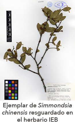 La Jojoba, cuyo nombre científico es Simmondsia chinensis, es una planta nativa de Norteamérica. Su primera peculiaridad está en su nombre, ya que por la parte correspondiente a “chinensis”, erróneamente se pensaba que era una especie originaria de China; al parecer a Heinrich Friedrich Link, un botánico alemán, que colectó plantas de Jojoba para describir a la especie por primera vez para la ciencia, se le mezclaron las jojobas con otras plantas de diversas especies colectadas en dicho país, lo que dio origen al malentendido. A lo largo de su historia taxonómica, es decir, de su posición en la clasificación de las plantas con flor, Simmondsia chinensis se ubicó en diversos grupos muy distintos. Actualmente la especie se clasifica en su propia familia botánica Simmondsiaceae, en la cual es el único miembro.