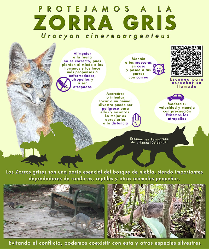 La zorrita gris es una de las especies de cánidos que se distribuye en todo el territorio mexicano. Recientemente ha sido observada y fotografiada en el Santuario del Bosque de Niebla y el Jardín Botánico Francisco Javier Clavijero, el hecho de poder observar a este animal en libertad es muy emocionante.