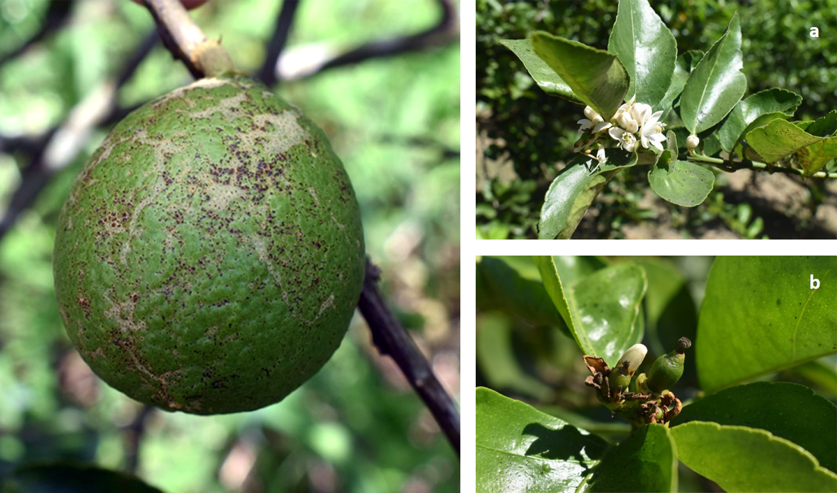 En la Red de Manejo Biorracional de Plagas y Vectores, se está explorando el uso de productos compatibles con un manejo biorracional, como organismos benéficos, insecticidas biológicos, polvos minerales y aceites esenciales, para proteger los frutales usando estrategias amigables con el ambiente. Esto abre la puerta a la producción de limones Persa de alta calidad, no solo para el consumo en fresco, sino también para aprovechar al máximo su potencial como materia prima en la producción de insumos agrícolas naturales (Fig. 3 a y b).