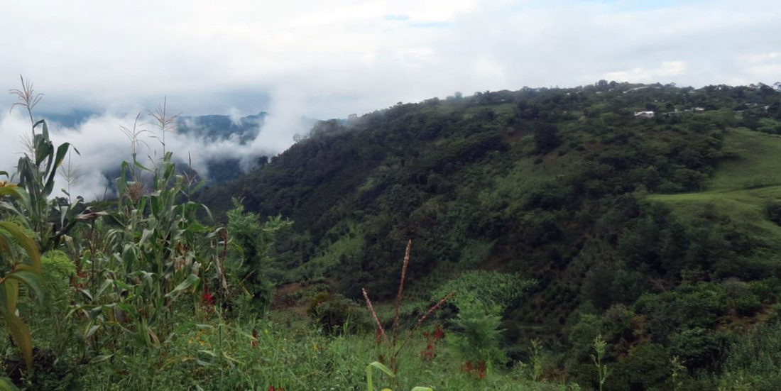 Paisaje de la región serrana del municipio de Atzalan, en el totonacapan en Veracruz. Se observa la diversidad de cultivos y espacios de manejo en una matriz de vegetación diversa.