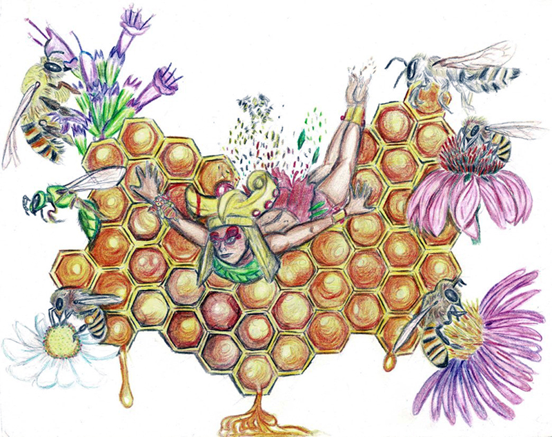 Dibujo inspirado en el Dios maya “Ah-Muzen-cab” (el que guarda la miel). Agradecimiento especial al autor Azahel Piña.
