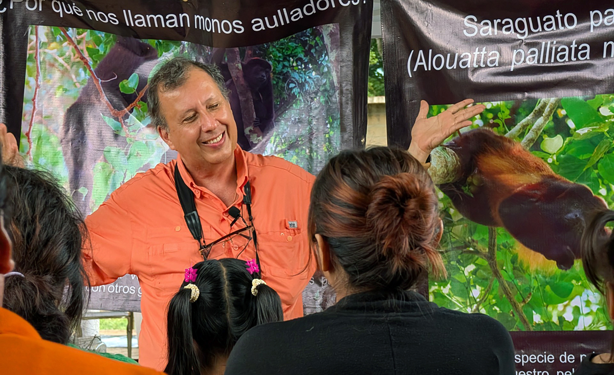Dr. Juan Carlos Serio-Silva, compartiendo actividades de educación ambiental y el valor de conservar el entorno para pobladores locales