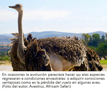 Todas los que hayan visto la saga de Pokemon conocen al personaje de Meowth. Este amigo tiene aspecto de un gato blanco, que camina en dos pata y es el único pokemon que habla. Sin embargo, cuando "evoluciona" se convierte en Persian un tigre albino que se desplaza en cuatro patas y únicamente ruge. En la naturaleza existen muchas especies que a lo largo del tiempo han perdido características aparentemente ventajosas que estaban presentes en sus ancestros. Por mencionar algunos ejemplos tenemos el caso de las avestruces, emúes, casuarios, ñandúes y kiwis que han perdido la capacidad de volar. También todos conocemos a las serpientes que provienen de ancestros tetrápodos, no obstante las serpientes han perdido las extremidades. Un ejemplo más es el ajolote, una especie paedomórfica (lo que significa que el adulto retiene características juveniles) cercanamente relacionada con la salamandra tigre; pero en el caso del ajolote, este llega a la madurez sin completar la metamorfosis típica de los anfibios. El adulto del ajolote no es un organismo terrestre, permanece en el agua y nunca pierde las agallas. Es común escuchar a personas decir que estas especies han "desevolucionado" o "deevolucionado". Esta idea proviene de la falsa concepción de que la evolución es un proceso natural que generación tras generación va refinando y mejorando a las especies.