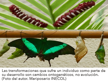 La evolución es un proceso que ha ocurrido desde el inicio de la vida. Es una secuencia de cambios que se van produciendo de una generación a la siguiente. Los filósofos griegos ya debatían las realidad de la evolución biológica. Anaximandro de Mileto (610 a 547 a.C.) basado en sus observaciones de la naturaleza postulaba que: "Todos los seres vivos incluyendo al hombre mismo proceden del fenómeno húmedo. En el inicio, la Tierra era líquida y por un proceso de transformación, lo húmedo dio lugar a lo viviente. El hombre tuvo como primeros antepasados a los peces y posteriormente a otros animales primitivos". Tuvieron que pasar cerca de 2000 años para que esa idea se formalizara por los científicos y naturalistas del Siglo XIX. Una de las mejores definiciones de evolución la ofrece Charles Darwin en su libro El Origen de las Especies donde escribe: "Evolución no es más que la descendencia con modificación". Esto me lleva a desmentir la falsa creencia de que la evolución es un proceso que tarda millones de años en ocurrir. Para darnos una idea de lo rápido que puede ser el proceso evolutivo simplemente pensemos en el caso del SARS-CoV-2. El virus original o silvestre se detectó por primera vez en China en el 2019, dos años más tarde la Organización Mundial de la Salud reconocía la aparición de cuatro variantes de importancia para la salud humana (variante Alpha septiembre 2020, Beta diciembre 2020, Gamma enero 2021 y Delta junio 2021). En la actualidad sabemos que la evolución es un cambio en el perfil genético de una población de individuos. Los cambios observados en una población que son resultado del proceso evolutivo son aquellos heredados por medio del material genético de los padres a los hijos. En otras palabras la evolución ocurre entre generaciones, no en un individuo durante el transcurso de su vida. En muchas especies los juveniles, adultos y ancianos poseen características diferentes. Esta transformación que sufre un organismo a lo largo de su desarrollo es lo que se conoce como Ontogenia. Por cierto, los Pokemones no evolucionan, sufren cambios ontogenéticos.