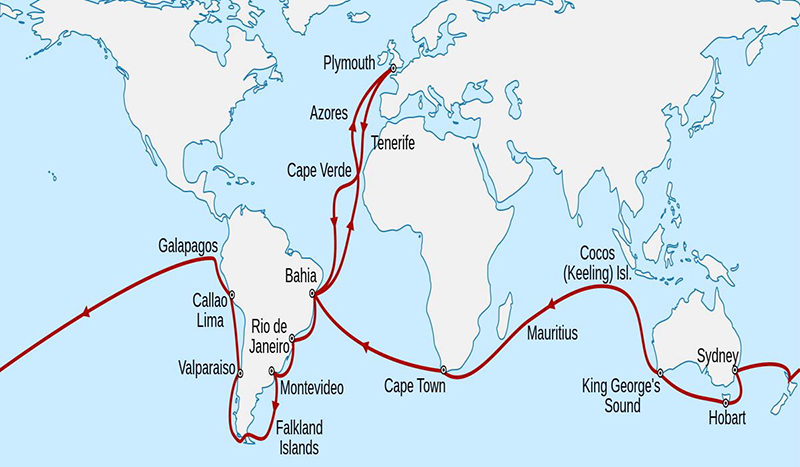 Entre los candidatos que recibieron la invitación estaba el joven Darwin. En primera instancia Charles fue rechazado por Fitz-Roy ya que según el tenía facciones y una estructura del cráneo de una persona no confiable. Sin embargo nadie, a excepción de Darwin, estuvo dispuesto a embarcarse y dejar a su familia por un periodo tan extenso. De esta forma, el 27 de diciembre de 1831 Charles inicia la travesía más importante de su vida. En realidad, la historia apenas comienza. Al poco tiempo de zarpar, Fitz-Roy y Charles descubrieron que este sufría de fuertes mareos. Los primeros días del viaje fueron una tortura para Charles, le era muy difícil retener los alimentos y se sentía tan miserable que en más de una ocasión tuvo el pensamiento de abandonar la aventura. Por suerte, poco a poco Charles logró tolerar la vida en el mar. Es probable que Darwin no haya sido una persona tan agradable, muy pronto diferencias de opinión hicieron que el capitán y su acompañante se enfrascaran en tensas discusiones. En parte, usando como pretexto los mareos de Charles, el capitán lo enviaba a tierra firme en las expediciones de exploración y así tener un respiro de la presencia de su no tan cordial amigo. En estas escapadas, Darwin tuvo la oportunidad de interactuar con el naturalista oficial del Beagle. Aun cuando Charles intento tratarlo como un colega, la opinión que tenia sobre el no era positiva, pensaba que era un científico anticuado con ideas obsoletas. La competencia entre ellos comenzó a generar fuertes roces, llegando a ser la situación tan insostenible para el naturalista que a un año de haber iniciado el viaje decidió renunciar a su comisión en el Beagle. En su diario escribiría: “Encontrándome en un falso puesto a bordo de una pequeña e incomoda nave, y extremadamente decepcionado sobre mis expectativas para desarrollar mi labor como naturalista, he solicitado al Almirante en turno se me permita retirar de esta expedición, y regresar a casa a bordo del H.M.S. Tyne.” Y esta es la historia de como Sir Charles Robert Darwin a sus 23 años terminó siendo el principal, aunque no oficial, naturalista durante el segundo viaje de exploración del H.M.S. Beagle.