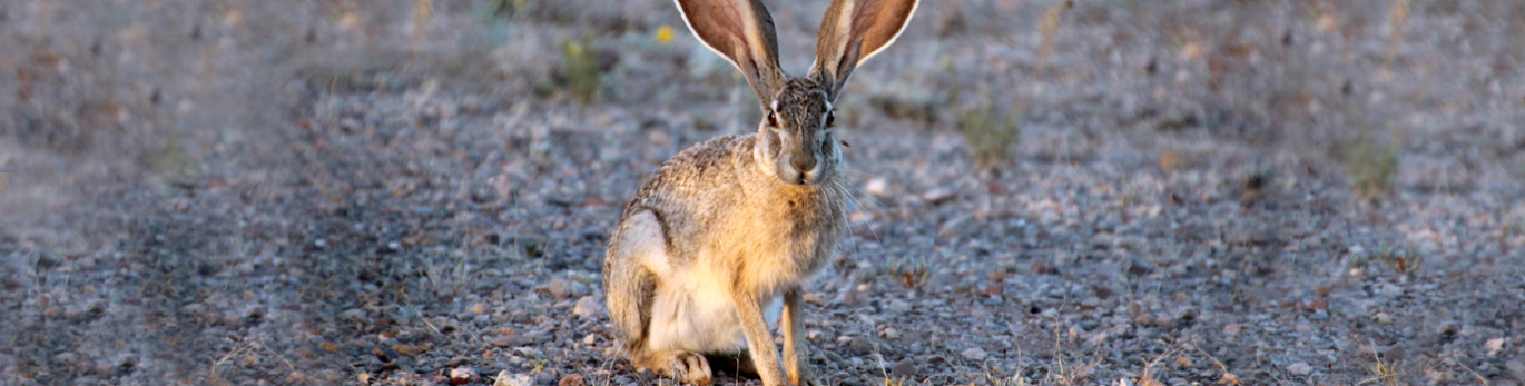 SLIDER: Macho adulto de liebre de cola negra (Lepus californicus), nótense las grandes orejas que no solamente le sirven para tener un oído muy fino, sino que le sirven para disipar el calor del desierto.