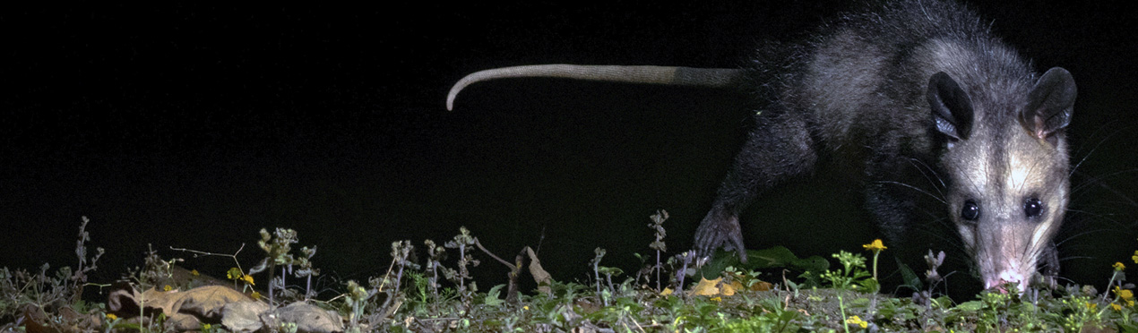 Slider: un tlacuache inspecciona la estación de fototrampeo instalada para captar fotografías en alta definición. Foto: Jorge Ramos-Luna